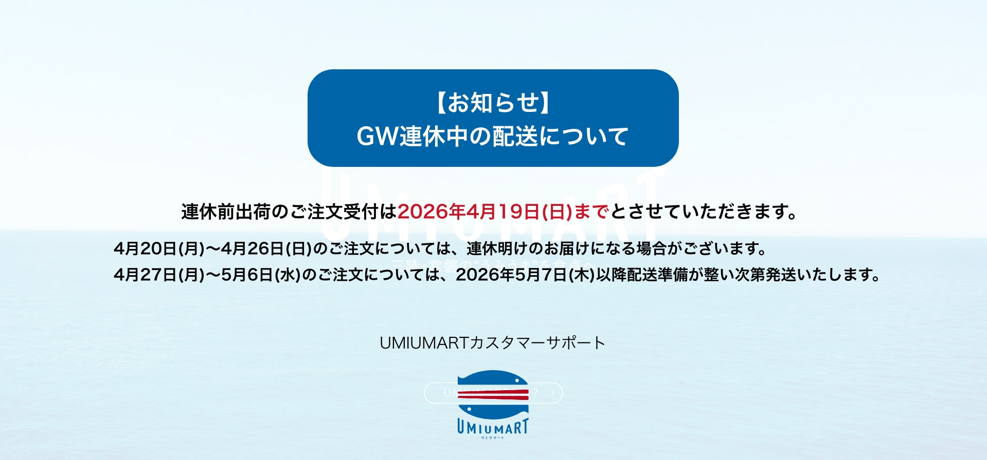 平素より、UMIUMARTをご利用いただきまして誠にありがとうございます。