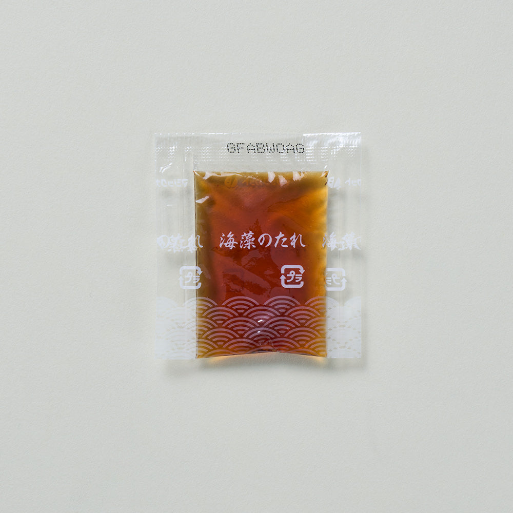 ②海藻のたれ:たれ(しょうゆ(国内製造)、植物たん白加水分解物、砂糖混合ぶどう糖果糖液糖、砂糖、かつお節エキス、魚介エキス、唐辛子)、(一部に小麦、大豆を含む)